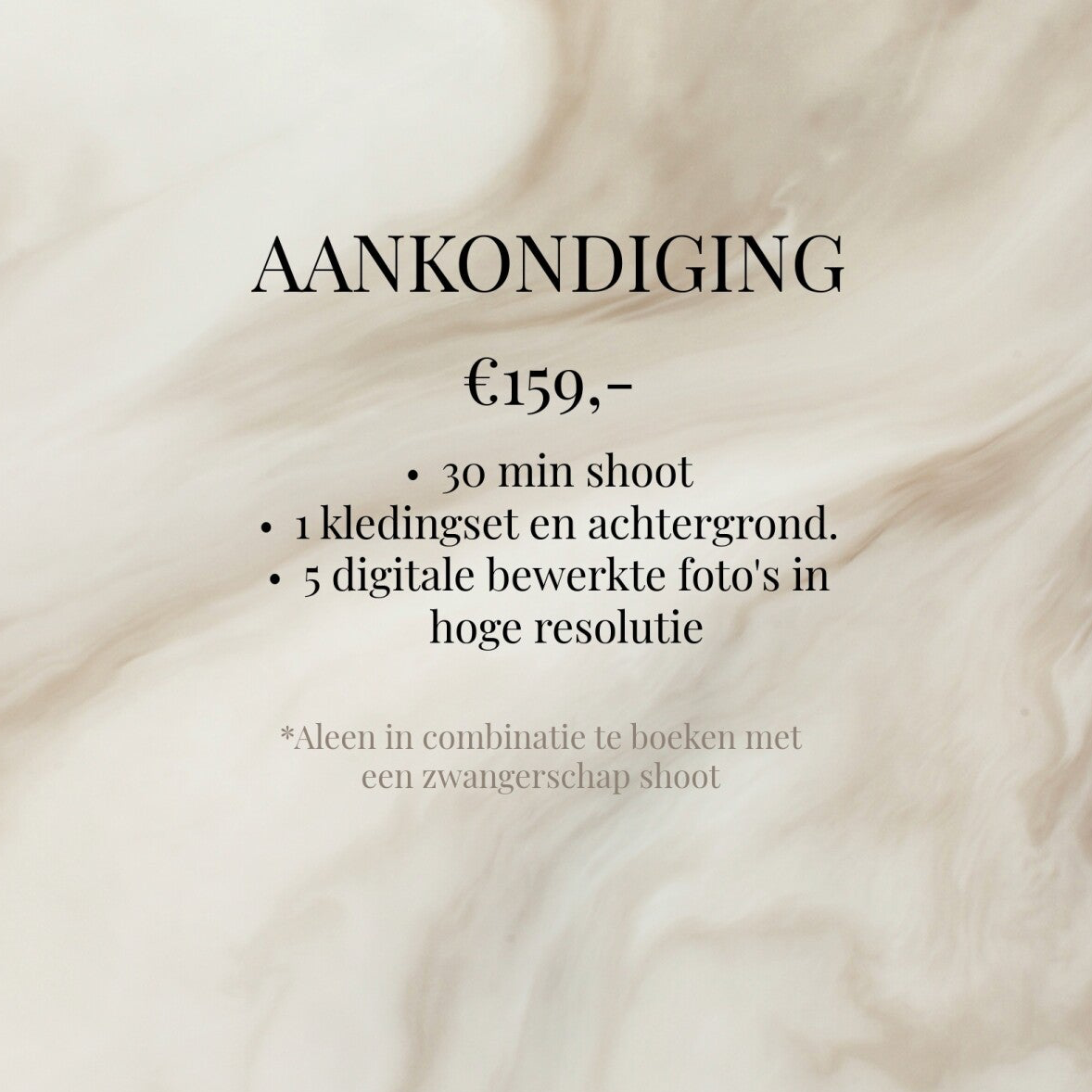 Elke shoot is uniek, net als jullie verhaal. Daarom werk ik met verschillende pakketten voor zwangerschap-, familie- en business shoots. Zo kies je altijd een optie die past bij jouw wensen, budget en het doel van de foto’s.
